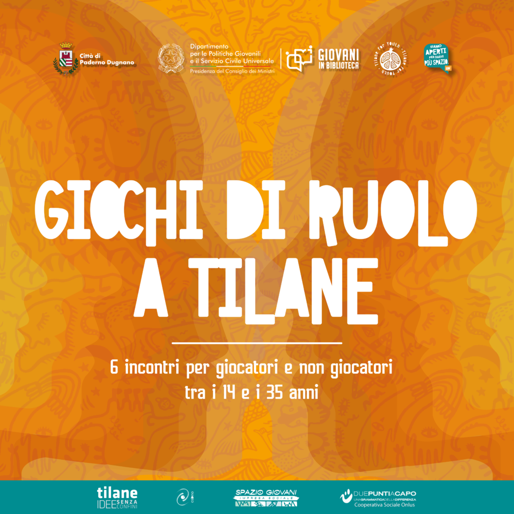 LA MAGLIA NERAReading teatrale di e con Matteo Caccia giovedì 16 ottobre 2025 @Tilane GIOCHI DI RUOLO A TILANESei incontri per giocatori e non 14-35 anni dal 18 ottobre al 13 dicembre 2025@Tilane LEGGERE TRA LE IMMAGINIGruppo di lettura sugli albi illustrati dal 25 ottobre al 20 dicembre 2025@Tilane OLTRE IL TALENTOIncontro con Pippo Ricci sabato 25 ottobre 2025@Tilane RIPROGETTIAMO IL GIOCO DI TILANEIncontro di brainstorming sabato 25 ottobre 2025@Tilane SUPERCHARGED BY AI Mostra interattiva dal 27 settembre al 20 ottobre 2025 @Foyer Tilane INTERVALLO // MUSICA MAESTRO!Ascolto guidato di musica classica da ottobre a dicembre 2025@Auditorium Tilane OLTRE IL TALENTOIncontro con Marco Maccarinigiovedì 30 ottobre 2025@Tilane LEGGERE TRA LE IMMAGINIPresentazione libro di Maria Polita sabato 4 novembre 2025@Tilane FINCHÉ IL CAFFÈ È CALDO Il gruppo di lettura del lunedì mattina un incontro al mese da ottobre a maggio 2026 @Tilane PAROLE RAMPANTI Il gruppo di lettura del martedì sera un incontro al mese da ottobre a maggio 2026 @Tilane IL GIOCO DI TILANEPresentazione del gioco aperta a tutti sabato 29 novembre 2025@Tilane GOMITOLI DI STORIESpettacoli teatrali (6-10 anni) un sabato al mese da ottobre 2025 a marzo 2026@Auditorium Tilane PICCOLE ORECCHIELetture per 3-5 anni un venerdì al mese da ottobre a marzo 2026@Tilane PASSENGERSIl gruppo di lettura per teens (14-18 anni) un mercoledì al mese da ottobre a maggio 2026@Tilane PICCOLISSIME ORECCHIELetture per 1-2 anni un sabato al mese da ottobre a marzo 2026@Tilane INCONTRI INTORNO A UN FILOPomeriggi di lavoro all’uncinettotutti i mercoledì e due sabati al mese@Tilane